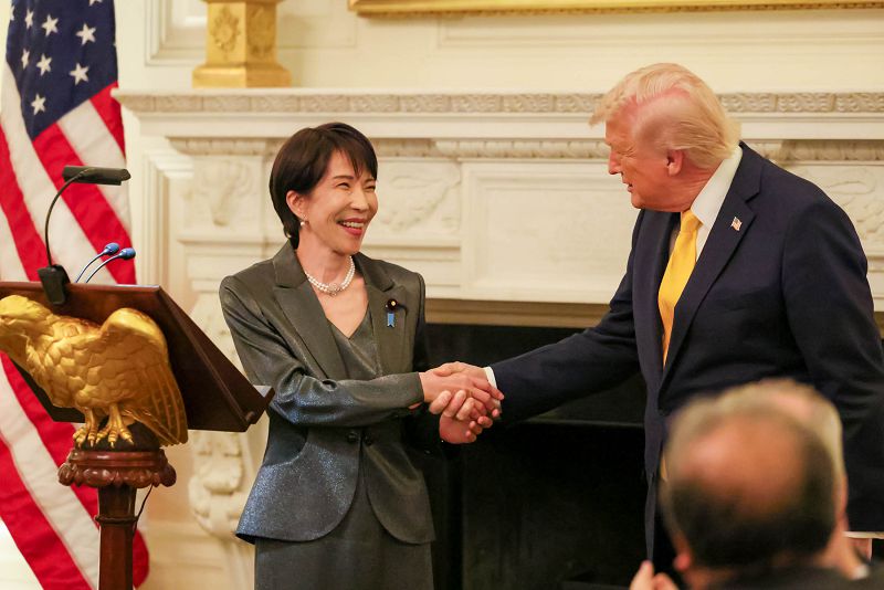 【本報綜合外電報導】日本首相高市早苗赴美訪問,在白宮和美國總統川普舉行雙邊會談,川普大讚高市「非常受歡迎且具影響力」,高市則說,相信只有川普才能實現全球和平。川普表示,美日雙方擁有深厚支持與情誼,根據日方表態,日本正採取行動挺身而出。這場會談聚焦貿易、能源和經濟安全等議題,也包括伊朗局勢。