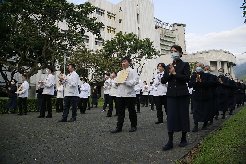 在感恩追思典禮,醫學生們獻唱「菩薩的化身」,表達對無語良師無私奉獻,以及家屬成全的感恩之意。慈大醫學系五年級學生蘇琮凱表示,儘管無語良師躺在解剖檯上,但我面對的是一個完整的人,也曾有過鮮活的生命。醫學不只是知識與技術,而是學會面對與尊重生命。所以,每一刀都要很謹慎、很精準,以最溫柔的態度對待,還要謹記在心,成為一位對得起老師與家屬的醫師。