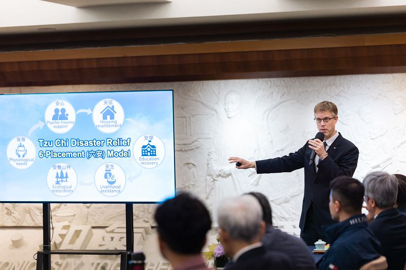 慈濟除了介紹防救災經驗,也分享馬太鞍堰塞湖事件救災期間,政府與民間協力救災、各界人士自發性投入,包含支援清掃、提供行動電源與行動醫護等服務,展現台灣人民的軟實力。