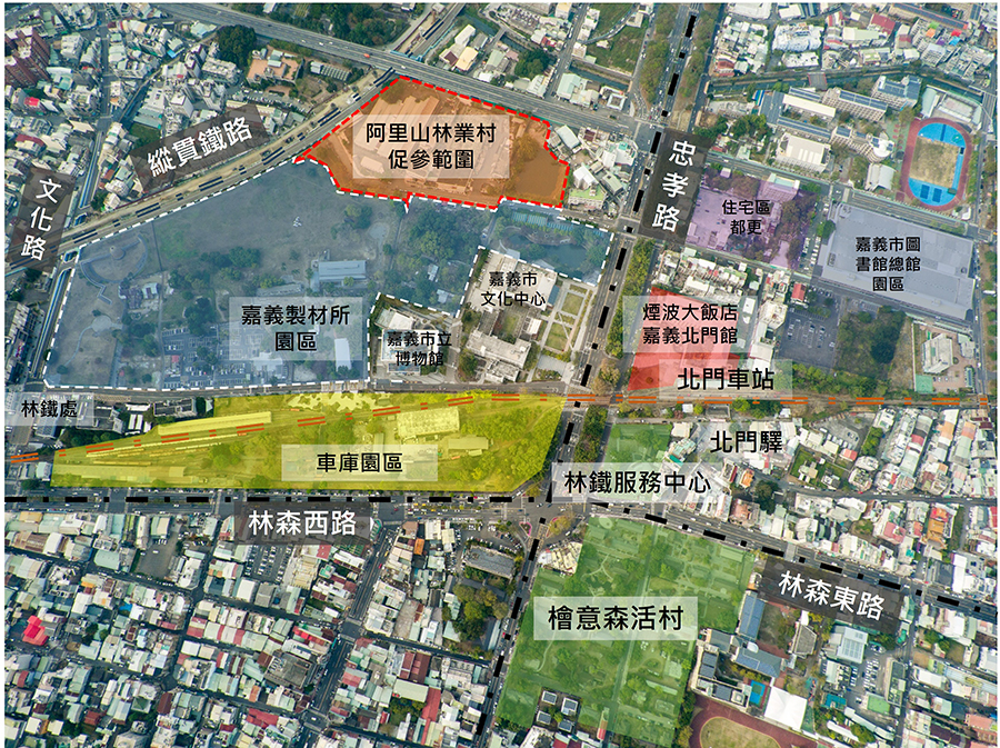 本次招商基地面積調減為約3.5公頃,劃出文化資產建物,北側綠地可選擇是否納入義務管理維護範圍。基地周邊環境發展迅速、配套完整,如檜意森活村、北門驛、嘉義車庫園區、嘉義市圖書館總館園區、嘉義獄政博物館、嘉義文創園區(舊嘉義舊酒廠)及市立美術館等,各亮點經軸帶串聯,與區域發展相互加乘,未來將與嘉義地區其他新興觀光遊憩區共同帶動發展,創造藝文城市新風貌,具整體規劃發展之空間潛力。