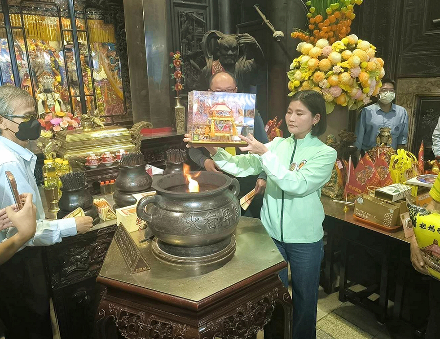 【記者雷琇雯雲林報導】年度宗教盛事白沙屯媽祖徒步進香即將展開,雲林至善文化協會日前於北港朝天宮舉行結緣品祈福儀式,由縣長張麗善、副縣長陳璧君等人出席,與協會幹部及志工一同虔誠祈福,祝願進香活動平安順利、圓滿成功。