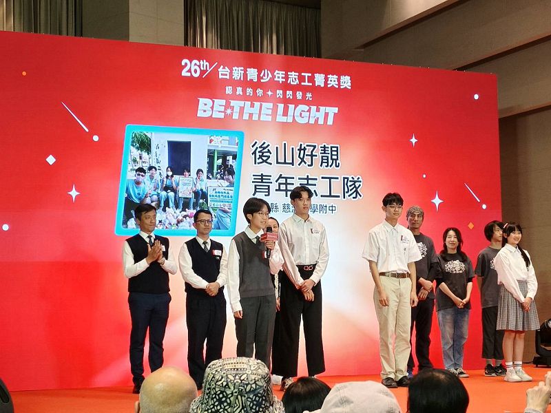 台新青少年基金會主辦的「第26屆台新青少年志工菁英獎」全國表揚典禮在3月21日於台新金控大樓盛大舉行,本屆共有1,830件服務事蹟報名。在競爭激烈的評選中,慈濟大學附屬高級中學表現亮眼,一舉拿下三個獎項:周澤恩同學榮獲僅八個名額的「全國菁英獎」殊榮;慈中後山好靚青年志工隊獲選「社團影響力獎」(全國僅四組獲獎),由隊長黃祺鈞代表受獎,另有洪為亨、李玉燕同學獲頒「奉獻獎」,展現慈濟大愛育才的教育成果。