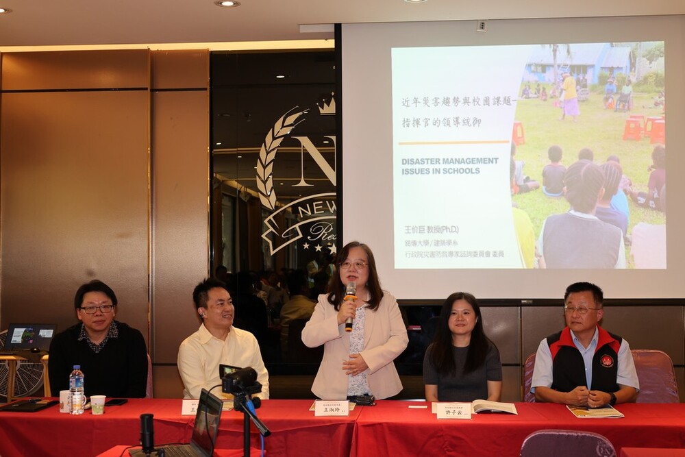 下午則以防災教育為主題,由銘傳大學建築學系王价巨教授主講「近年災害趨勢與校園課題—指揮官的領導統御」。以近年國際重大地震事件為引,強調「全校整體途徑」的重要性,涵蓋安全環境與學習設施、學校災害管理體制、韌性防災教育及心理支持四大面向。王教授表示校長為學校緊急災害應變指揮官,應從標準答案式訓練模式轉型為判斷原則的培養,建立師生一輩子可帶著走的應災能力。