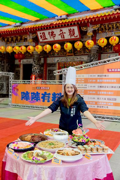 眾所矚目的「2026高雄內門宋江陣」活動已在內門紫竹寺盛大開幕,除了熱血的「全國創意宋江陣頭大賽」及「羅漢門迎佛祖」遶境等精彩活動外,每年都讓饕客食指大動的「宋江大宴」將在3月28、29日及4月4日中午12時開席,每桌8800元,即日起開放訂桌(電話:0985-515955、07-6671049)。觀光局長高閔琳指出,今年的宋江大宴由觀音佛祖神明欽點「四合一筵席」薛志龍總舖師掌鼎,推出五福大拼盤、焗仕帝王蟹、八珍海鮮羹、百灼海大蝦拼九孔、焗烤龍雪魚、養生燉烏骨雞、蒲燒鰻魚干貝米糕、唐朝一品元蹄等共10道功夫手路菜,歡迎民眾春假出遊來內門呷辦桌、看陣頭,遊山城,詳情請上「高雄內門宋江陣」臉書粉絲專頁(https://pse.is/8tpknn)及「高雄旅遊網」(https://khh.travel/zh-tw)查詢。(圖文:記者于欽智)