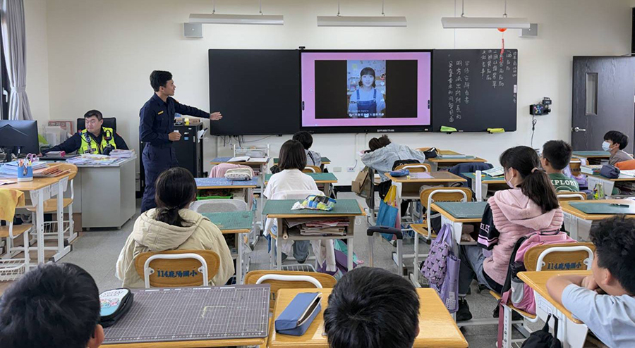 緊接著,員警走進高年級教室,瞬間轉換成「安全知識講師」,用生動圖片與短片抓住學生目光,從大型車「看不見的危險」視覺死角,到潛藏在生活中的交通風險,提升學童上下學行人安全交通知識,再到常見毒品樣態,一一深入淺出講解,讓學生聽得專注又驚呼連連。