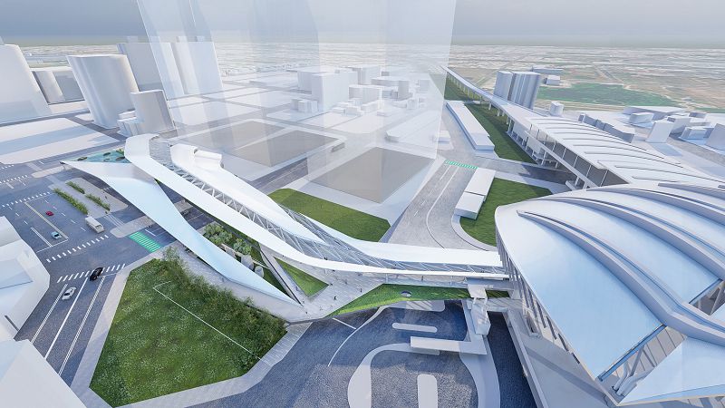 台中轉運中心鄰近鐵道文化園區與帝國糖廠湖濱生態園區等重要節點,不僅是交通樞紐,也兼具串聯城市觀光的功能。未來將整合公車與國道客運等多元運具轉乘機制,並預留與捷運系統銜接空間,逐步建構完善且具彈性的公共運輸網絡。葉局長進一步指出,台中轉運中心在空間規劃上結合地下停車場與地面轉運設施,並透過二樓人工平台串聯周邊區域,打造人車分流、友善步行環境。建築設計以「山谷」為意象,融合立體綠化與開放空間,不僅提升交通機能,也兼顧都市景觀與環境永續。
