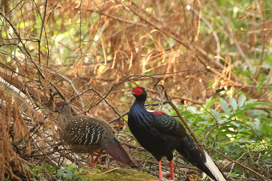 玉山園區藍腹鷴雌雄同行 山羊水鹿覓食