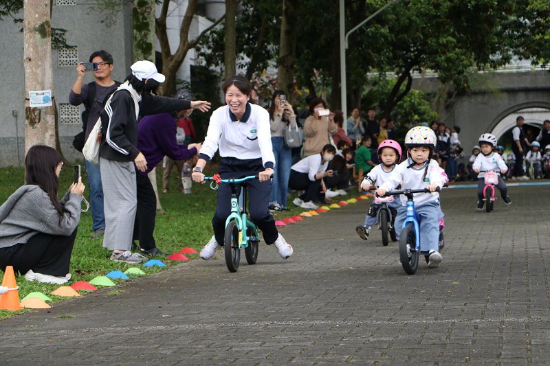 幼幼班的顏桂玲老師和高馨鎂老師也分享:「幼幼班是第一屆參與滑步車競賽,這個階段孩子身體穩定性和協調性還在發展中,跌倒是難免會發生,為求孩子練習時的安全,我們也會教孩子穿戴護具,雖然要花許多時間練習,但幼幼班騎乘安全也是我們堅持做到的。」幼幼班浩淵媽媽說:「謝謝老師的教學,看孩子從開始只敢站著騎車,到現在能享受滑步車樂趣,讓我們看見孩子的成長及努力。」