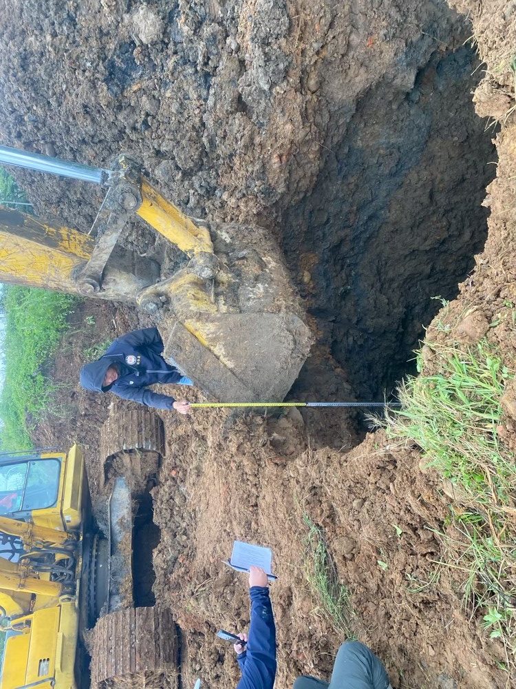 專案小組現場開挖發現大量紅磚、磁磚、鋼筋、電線、木材、廢布及金屬管等營建事業廢棄物。(桃檢署提供)