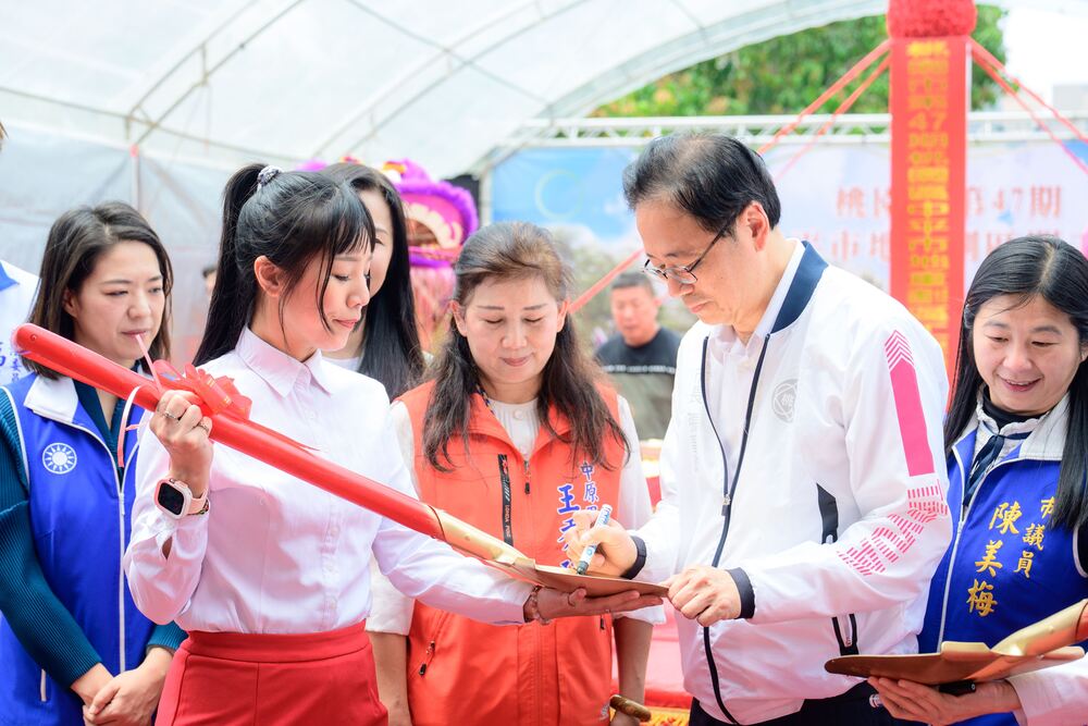 桃園市長張善政於金鏟上簽名。