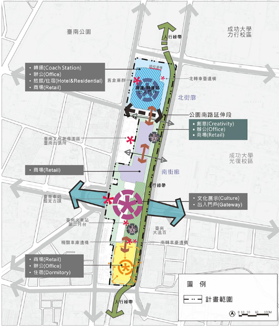 都發局代理局長林榮川表示,本案都市計畫變更的核心目標在於將臺南站區整合調整為「車站專用區」,以強化文化、商業、休閒及交通樞紐機能,臺鐵公司未來將進行招商開發,藉由鐵路地下化之都市再造契機,提供站區應有之都市核心機能;另因應站區整體交通動線需求,公園南路亦將打通至前鋒路,其與北門路、小東路所圍街廓將與交通局合作,規劃為臺南轉運站,整合鐵路、捷運(綠線)與公車系統,建構完善轉運機能。未來車站不再是阻隔市中心兩側的障礙,而是結合交通轉運、文化地標、商務發展與優質公共服務的立體化城市門廳。