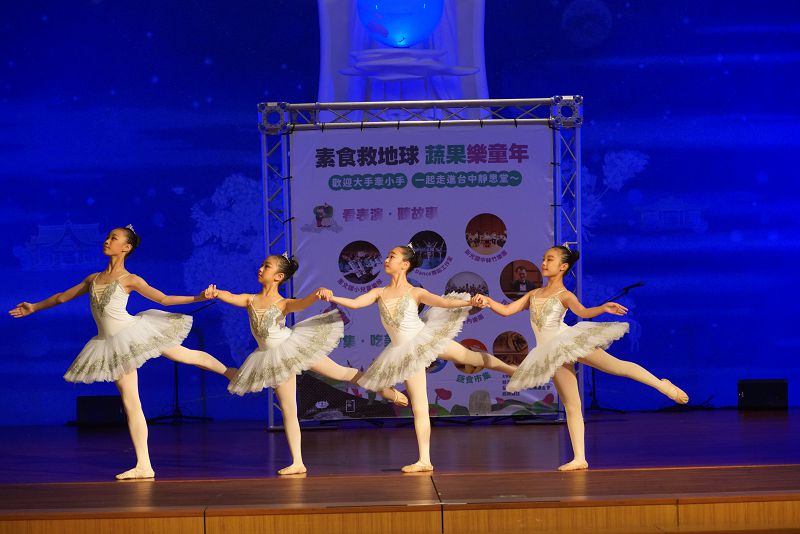 開幕當天,不僅邀請到惠文國小兒童樂團、新光國中絲竹樂團與穎樂室內樂團帶來精湛的樂曲演出,還有「Ruby’s Dance」充滿活力的律動表演。此外,「淨親子故事屋」特別從四本食育繪本中改編出一齣戲劇互動,讓孩子在歡笑中自然吸收蔬食的好處。