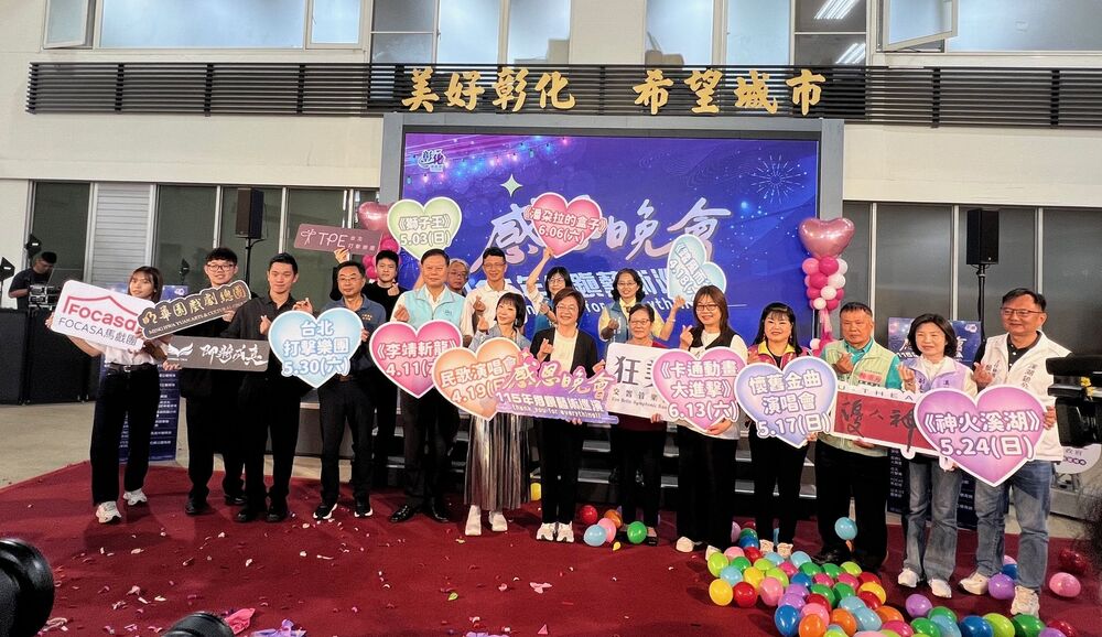 【記者鄭惠珠彰化報導】彰化縣政府以「感恩」為主題,規劃辦理「115年感恩晚會-鄉鎮藝術巡演活動」,以藝術串聯城市,將感謝化為每一場與民眾邂逅的文化之旅,2日在縣府中庭舉行宣傳記者會,彰化縣長王惠美等人與會。王縣長表示,活動將於4月11日至6月13日間的週末假期展開,規劃9場巡演。節目涵蓋傳統戲曲、交響樂、當代表演與經典流行音樂,呈現跨世代及多元融合的藝文盛會,皆為免票入場。