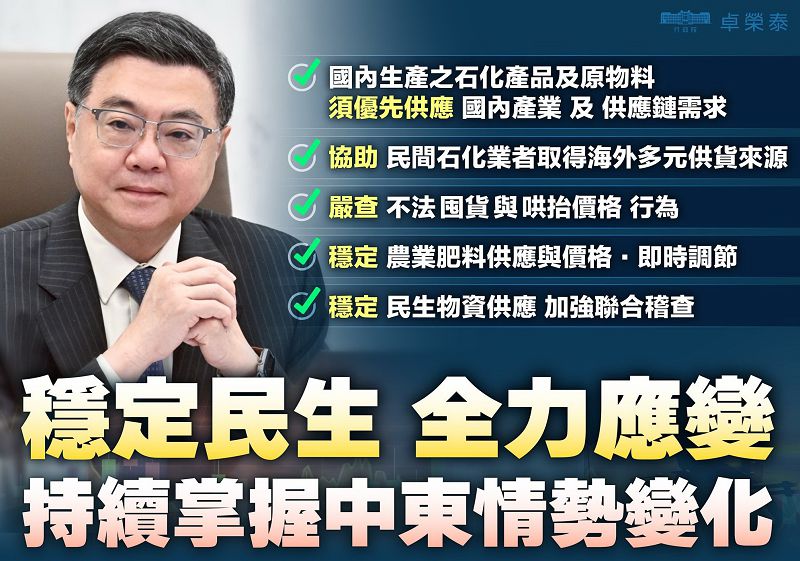 因應中東情勢 政院敦請請立院速審總預算因應衝擊