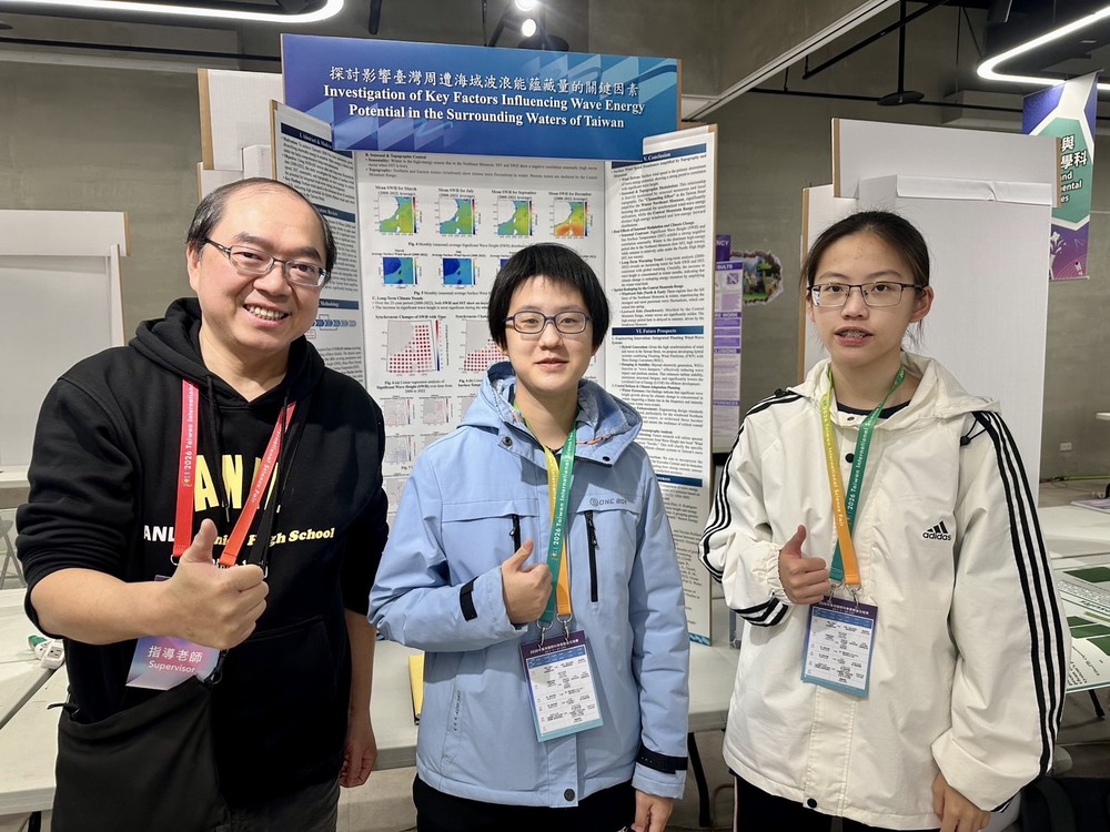 指導老師劉育祈表示,難得的是今年參賽學生都是高三同學,在升學準備壓力下,仍持續投入研究,為興趣理想全力以赴。蘇暐恩與陳樂宣同學,隨著在「波浪能」相關研究逐步深入,才發現需在龐大的海洋資料中抽絲剝繭、尋找規律,面對挑戰,兩人選擇迎難而上,透過自主學習,逐步培養閱讀期刊論文的能力,學習程式撰寫,進行大數據分析,展開超越課堂框架、充滿探索與成長的研究旅程。