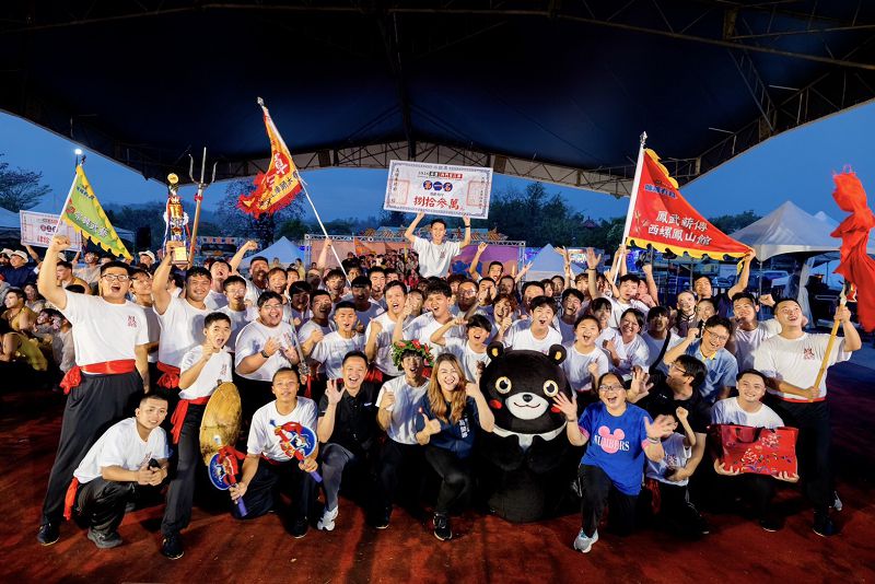 集結傳統陣頭、跨國交流、創意戲劇等多元文化的「全國創意宋江陣頭大賽」決賽,在內門紫竹寺熱血登場,吸引全臺各地藝陣愛好者前來觀賽加油,初賽脫穎而出的7支隊伍,經激烈競技,由鳳武薪傳-西螺鳳山館奪得冠軍;亞、季軍分別為國立臺南大學、宗興武藝,優勝獎是龍華科技大學、豫章武藝-武藝陣,佳作獎頒予實踐大學高雄校區宋江陣、敬天愛人護鄉里,特別獎項則是龍華科技大學獲得觀音佛祖獎,豫章武藝-武藝陣獲得高雄市議會議長獎。觀光局長高閔琳向所有辛勤指導的教練致上最熱烈掌聲及敬意,並特別頒發「十年評審」獎座予評審長鄭安寶、副評審長許振榮,感謝兩位評審長期在全國創意宋江陣頭大賽的貢獻。(圖文:記者于欽智)