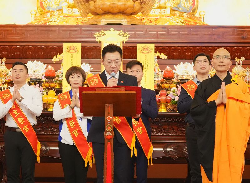 江啟臣指出,清明節不僅是慎終追遠、感念祖先的重要時節,也是追思守護家園忠烈英靈的時刻,感謝自興住持與靈巖山寺僧團,舉辦大悲懺法會,為國家祈福、為百姓息災。他回憶,他在金門服役期間,曾親歷1996年台海飛彈危機,因此更深知和平得來不易;而宗教的慈悲與軍人的剛毅,都是為了守護台灣、遠離戰爭,祈願透過此次法會,將功德迴向烈士英靈,同時祈求台中繁榮發展、國家安定、兩岸和平。