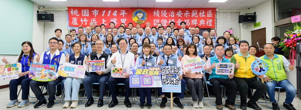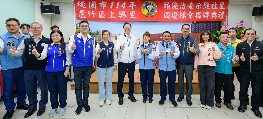 警察局表示,市府每年辦理「桃園市績優治安示範社區認證標章」評核,內容涵蓋警政、社政及消防三大面向,定期檢視社區安全成效。114年獲選社區除頒發認證標章外,並核發工作經費新臺幣6萬元,此次由蘆竹區上興里獲此殊榮,肯定其在治安維護上的卓越表現。