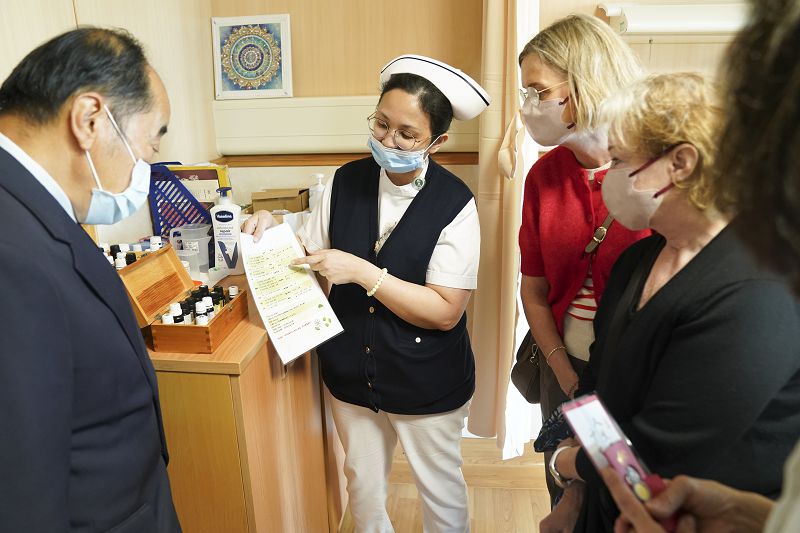活動安排多面向分享,首先邀請心蓮病房陳依琳護理長、劉又寬副護理長介紹如何透過輔助療法提升末期病人身心照護品質;中醫部林亞萱醫師分享中西醫整合照護模式,說明跨專業合作於臨床中的實際應用。此外,護理部滕安娜副主任則介紹以頌缽、瑜珈與正念等方式促進醫療人員身心健康的經驗,並安排心蓮病房與教學部實地參訪,讓國際專家深入了解臨床照護與教育推動現況。