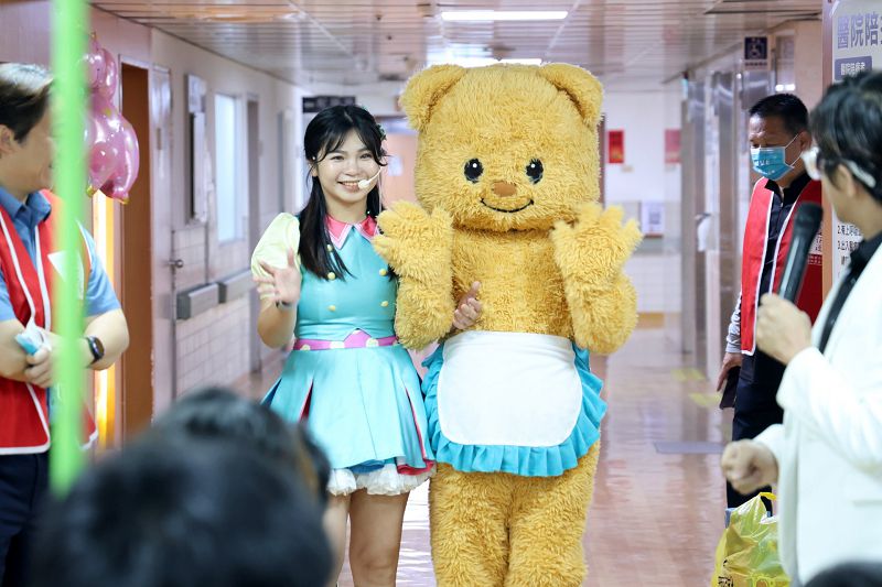 「今天我帶來了我的好朋友,漢堡熊!大家可以跟他打聲招呼嗎?」活動由漢堡姊姊與人形大布偶「漢堡熊」活力開場,帶領全場大、小朋友跳起輕快可愛的舞步,不論是模仿松鼠奔跑、還是學小兔子跳躍,都難不倒大家。當《無敵小可愛》旋律響起,就連原本害羞的孩子也忍不住跟著節拍鼓掌、點頭,甚至有小朋友表示平常就很喜歡這首歌,對歌詞與旋律早已背得滾瓜爛熟!隨後,漢堡姊姊就帶領小朋友唱跳Netflix近期的人氣電影《Kpop 獵魔女團》中的歌曲《Soda Pop》,唱到副歌時,在一旁的宋景歡副護理長也忍不住歡呼,牽起其他護理人員唱唱跳跳,氣氛既熱鬧又溫馨,大小朋友們一起幫助漢堡熊打敗森林裡的巫婆,把歡笑聲重新帶回病房。