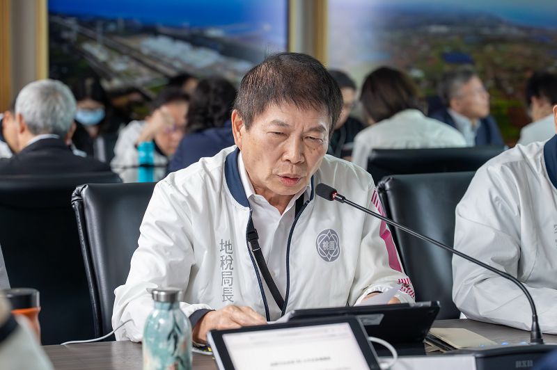 桃園市地方稅務局長姚世昌於市政會議中提出業務報告。