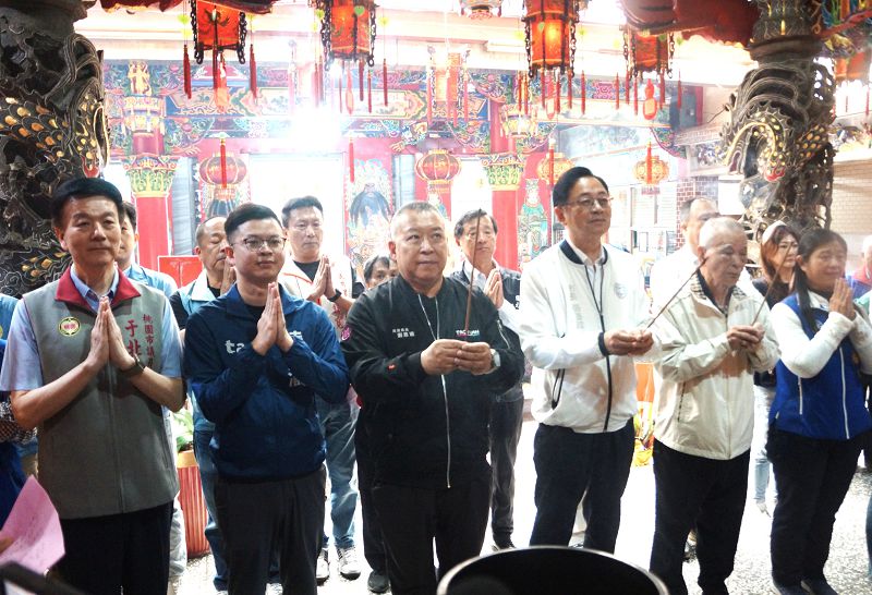 【記者徐玉英桃園報導】桃園市長張善政9日上午在市議員陳美梅、凌濤、于北辰、市府民政局長劉思遠、桃園區公所副區長邱創正及福元宮主委陳炎坤等人陪同下,前往桃園區出席「大檜溪福元宮保安廣澤尊王聖誕千秋參香暨贈匾」活動。