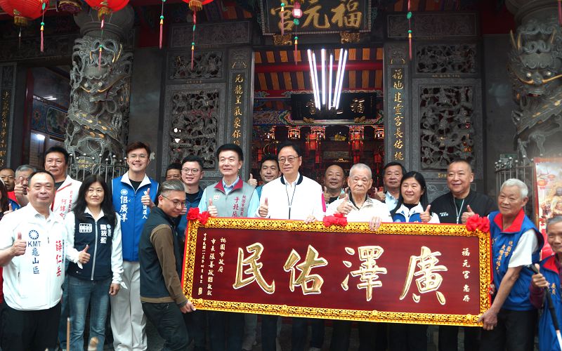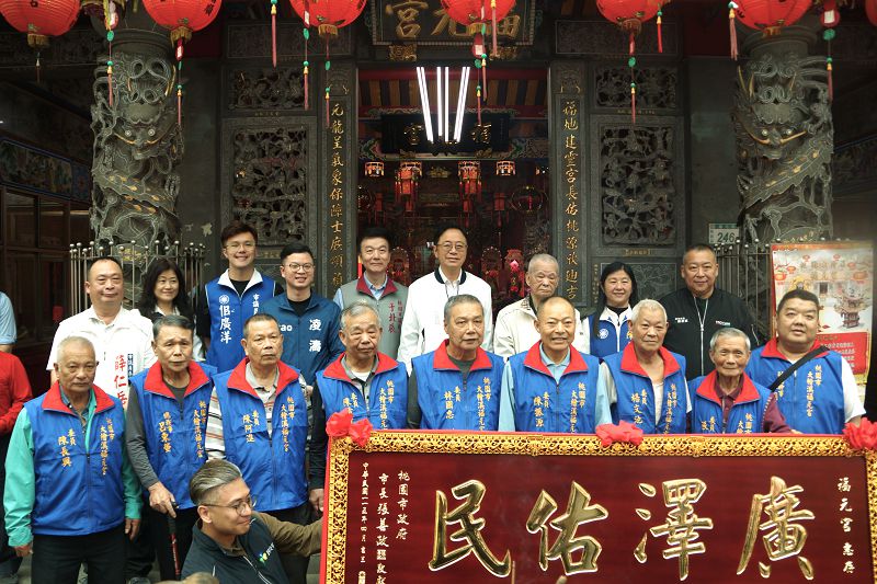 福元宮建廟逾百年,桃園市長張善政特別致贈「廣澤佑民」匾額,表達對廟方長期安定人心的肯定與感謝!(圖:記者徐玉英攝)