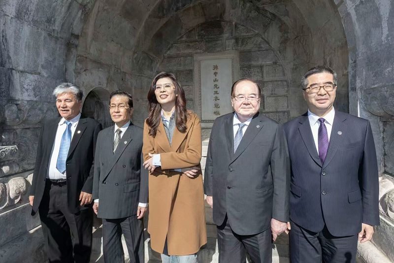 國民黨主席鄭麗文率領訪問團赴北京西郊香山碧雲寺,拜謁孫中山先生衣冠塚。(國民黨提供)
