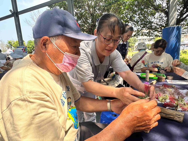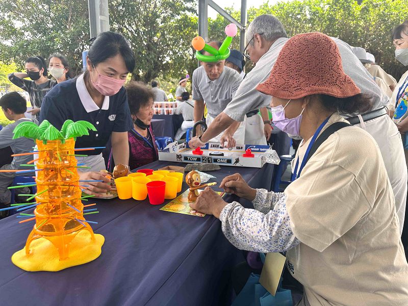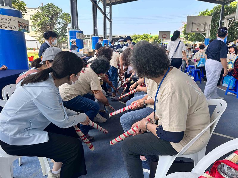 為了照顧鄉親多元需求,現場設置了宛如小型診所的複合式義診區,包含家醫、中醫及領藥服務,解決偏鄉就醫奔波的痛點。除了身體診察,現場也安排趣味的環保闖關,志工以簡單口訣「瓶瓶罐罐紙電1357」,引導長者將健康與環保理念融入日常。