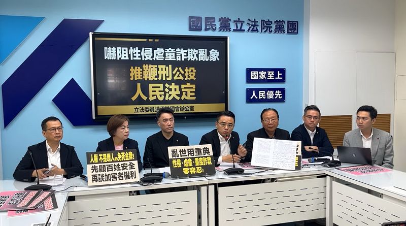 國民黨立委洪孟楷、林沛祥、羅智強、黃健豪、林德福、廖偉翔、楊瓊瓔等召開記者會,宣布提出「特定重大犯罪增設特別刑法制度(鞭刑)」政策公投案,主張應依循民主程序,將國家是否有必要針對特定重大犯罪建立更具嚇阻效果的特別刑法制度,交由全民共同表達意見,做為後續制度規劃與法制作業的重要依據。