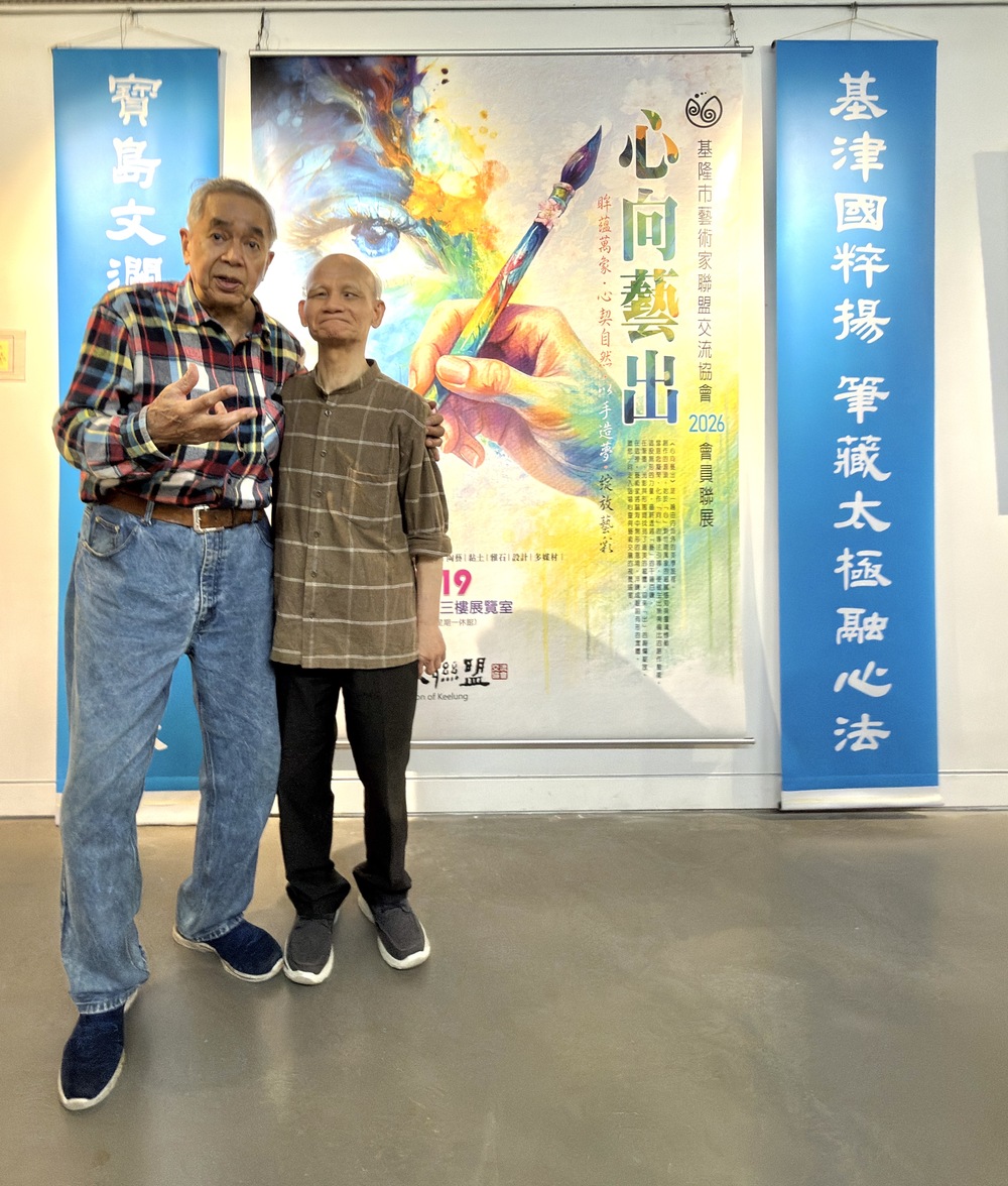 藝術傳承 14 載!基隆市藝術家聯盟創始元老張明萊(右)與潘古風(左),兩人互稱「精神領袖」與「聯盟靈魂」,情誼深厚。