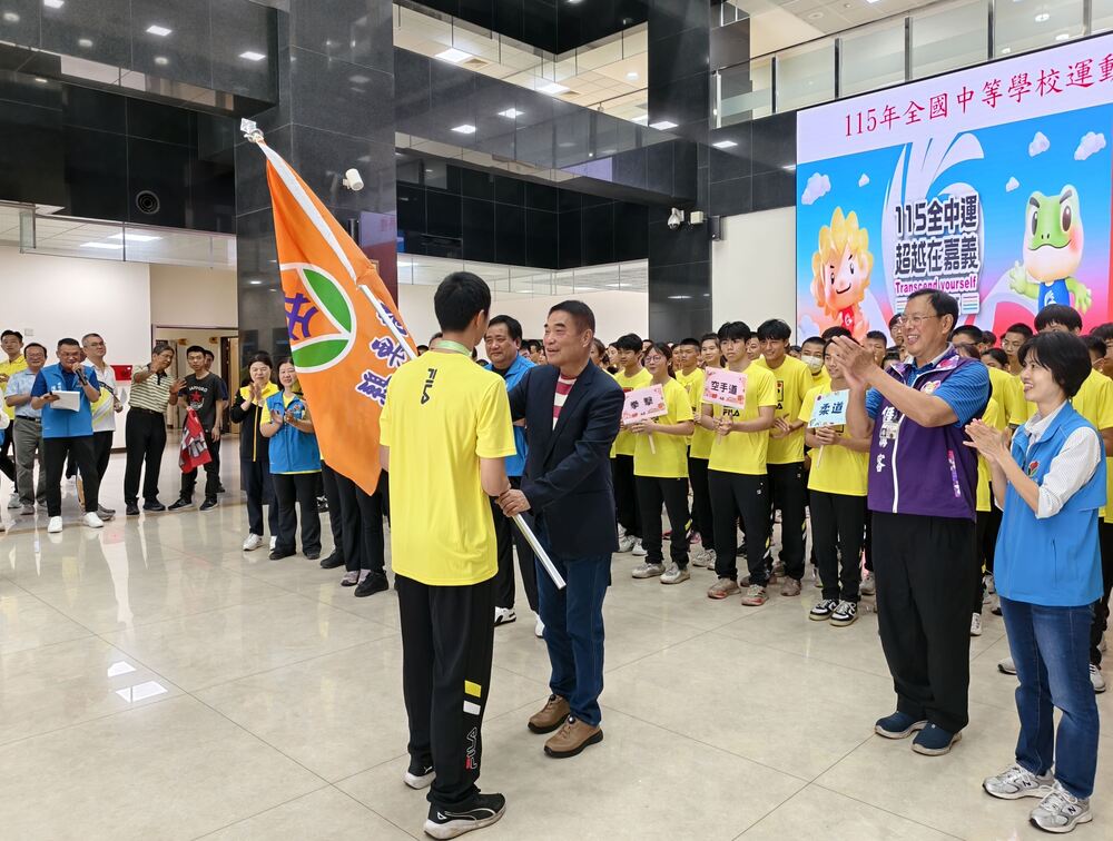 【記者林盈焜、羅玉女苗栗報導】115年全國中等學校運動會將於4月18日至23日在嘉義縣登場,苗栗縣政府14日在縣府第一辦公大樓舉行授旗儀式,由縣長鍾東錦親自授旗,為代表隊415名選手加油打氣,期勉全力以赴、再創佳績。