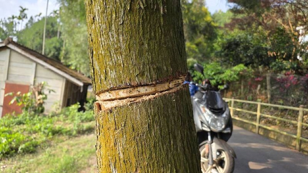 公所表示,經派員現勘,2株遭破壞的肖楠,在距地約1公尺處的樹皮位置,疑遭人用鋸子等尖銳物,以環繞方式割出寬3至5公分傷口,整株樹木樹皮已無法相連,在地的文史工作者潘樵認為,樹木的養分是靠表層組織輸送,就像人的血管斷了,未來恐難以救回。