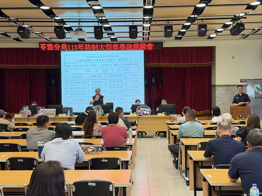 【記者張福全高雄報導】高雄市苓雅警分局為建立大型車駕駛正確駕駛觀念,加強事故防制於近日召開「115年防制大型車事故座談會」,邀集高雄市政府交通局、交通部公路局高雄市區監理所苓雅監理站、高雄市苓雅區公所、交通警察大隊及轄內各營造、運輸公司代表及轄內建案負責人(或駕駛人)等大型車相關單位人員共同與會。