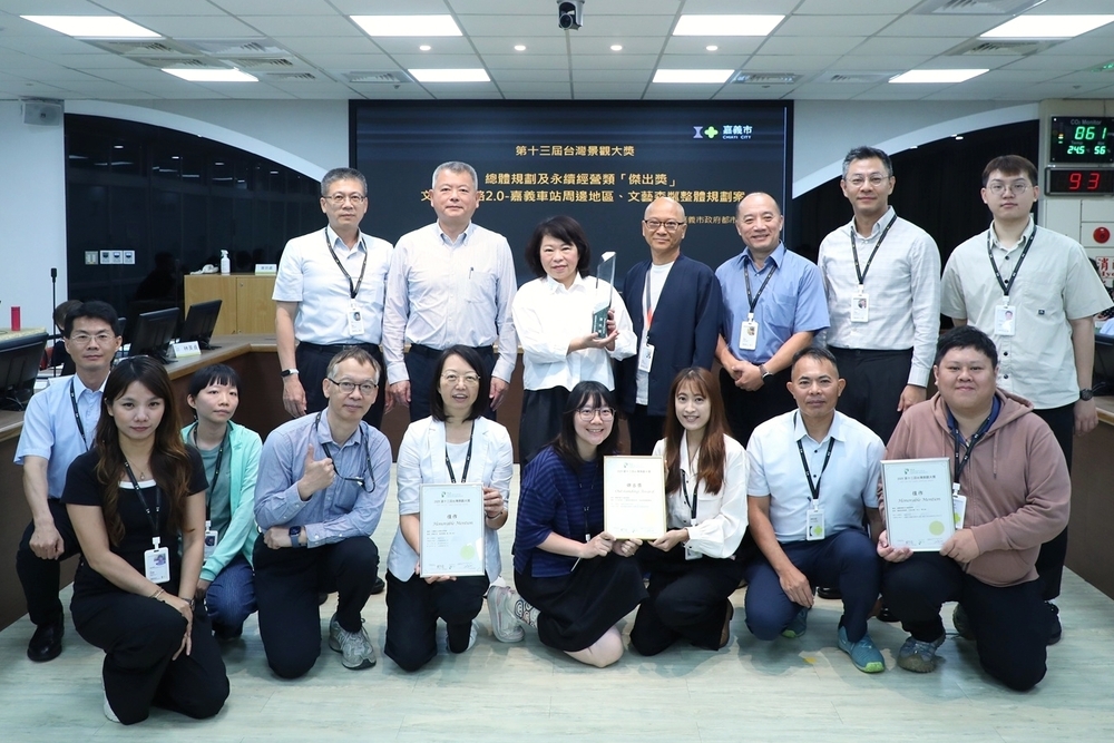 【記者張朝福嘉義報導】台灣景觀大獎為具指標性的景觀設計競賽,今年共吸引105件作品參賽,嘉義市政府突破重圍獲「第十三屆台灣景觀大獎」3項大獎,奪下「總體規劃及永續經營類」及「公園與公共開放空間類」兩大類別獎項,並4度蟬聯傑出獎項肯定,六年已累計獲得26座獎項,展現市府在城市景觀規劃、永續發展及公共空間營造上的卓越成果。市府獲獎局處於市務會議中轉呈獎項,黃敏惠市長期勉市府團隊持續精進、開創更多佳績。