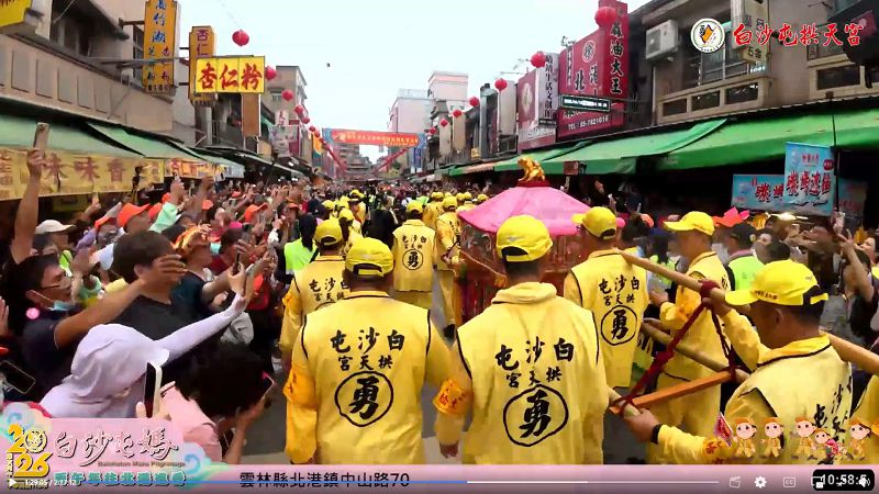 苗栗通霄白沙屯拱天宮媽祖徒步進香,16日上午抵達雲林縣北港鎮,數十萬人簇擁之下入廟,今年進香人數再創新高,除報名的46萬香燈腳外,沿途加入民眾絡繹不絕,估計超過60餘萬人湧入北港。隊伍自上午由元長鄉進入北港鎮,沿途信徒跪地迎駕、居民熱情提供補給,展現台灣深厚的人情味與宗教文化。雲林縣長張麗善率一級主管等人亦到場迎接,場面盛大。