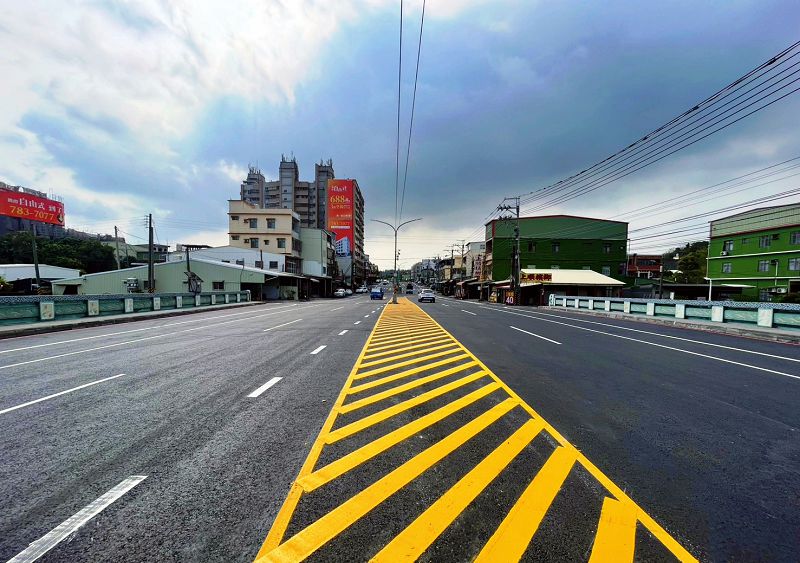 【記者陳志昌高雄報導】為提升改善用路安全,高市府工務局道工處選用改質瀝青與低碳再生瀝青混凝土,近期完成大寮新厝路全面翻新,改善面積達9萬平方公尺,新厝路為大寮及周邊小港、林園區交通往來幹道,不僅提供更舒適安全順暢的行車環境,並大幅提升地區運輸效能,該工程獲內政部國土管理署經費補助,總經費約4,300萬。