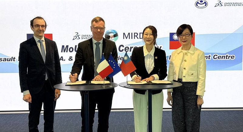 金屬中心為加速邁向AI轉型與淨零低碳雙軌發展,特與全球工業開發軟體領導大廠法商達梭系統簽署合作備忘錄,由金屬中心董事長劉嘉茹和達梭系統SIMULIA銷售暨市場行銷副總裁Sebastien Gautier共同簽署,雙方優先針對「高壓氫材料及零組件壽命分析技術」、「AI伺服器散熱分析技術」等技術領域展開深度合作;駐法國台北代表處郝培芝大使出席見證,展現政府對臺法技術合作的高度重視,同時宣示加速引進全球領先AI技術,提升國內產業創新研發。【圖文:記者于欽智】