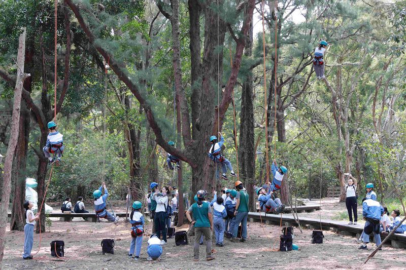 最令人期待的「攀樹體驗」開始時,許多孩子站在樹下,抬頭望著高高的樹,心裡其實有點害怕。有的人緊握繩子,有的人猶豫不敢踏出第一步。但在教練的耐心指導與同學的加油聲中,孩子們慢慢踏出步伐,一步一步往上爬。四年善解班冠樂分享:「一開始很怕,但後來發現自己可以做到!」當有同學成功爬高時,大家都熱烈鼓掌,彼此鼓勵。這一刻,孩子們學到的不只是攀樹技巧,而是面對困難時不放棄的勇氣。他們發現:原來害怕並不可怕,只要願意嘗試,就有機會突破自己,讓「我不敢」變成「我可以」。