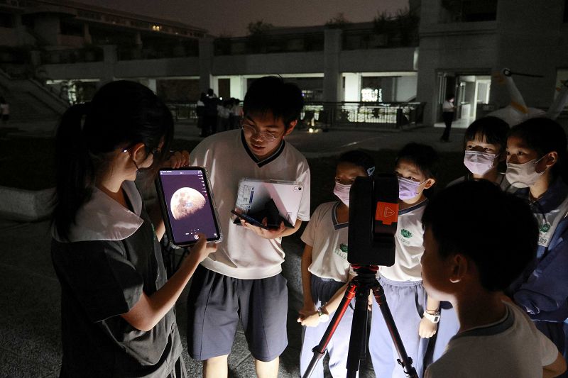 夜晚,孩子們走進中學部探索星空,參加「觀星夜語」活動。雖然天空有雲,看不清楚真正的星星,但透過學長姊用戲劇介紹星座故事,現場充滿笑聲與驚喜。學生學習使用觀星APP,透過螢幕認識大熊星與小熊星的位置。四年善解班加瑄說:「就像有一張星空地圖,很神奇!」四年包容班菀芸也分享:「我記住星座像什麼形狀,很有趣!」即使看不到真實星空,孩子們仍然打開了對宇宙的好奇心,學會用不同方式探索世界。