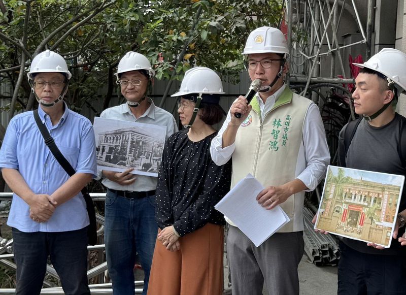 【記者吳峙嵩高雄報導】高雄市立圖書館曹公分館經耐震補強工程施作,意外露出早期建築遺構,被證實就是近百年前「鳳山街役場」原始構造,但後續保存方向未明,市議員林智鴻17日攜手文史團體,並邀文化局副局長簡美玲現地會勘,提出三點訴求,期盼「全市現存最老市圖分館」,也是「全國現存最老街役場」的曹公分館,能再現百年前風華原貌。