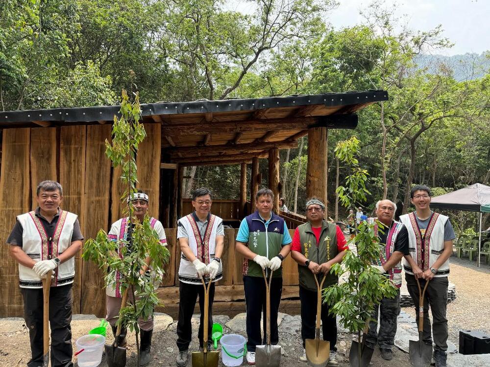 【記者陳良安南投報導】林業及自然保育署南投分署攜手南投縣信義鄉達瑪巒原住民重生協會及濁水溪線布農族獵人協會,於濁水溪畔巴庫拉斯舊部落,以國產柳杉、臺灣杉等在地木材重建布農族傳統獵寮,18日在分署長李志珉與四部落耆老見證下正式啟用,象徵國產材利用、文化傳承與部落共管合作的實踐。啟用當日南投分署也和族人共同種下捲斗櫟等原生樹種,寓意布農文化扎根及永續傳承,儀式在部落耆老祈福及鳴槍後圓滿完成,展現布農族與自然共生的深厚連結。