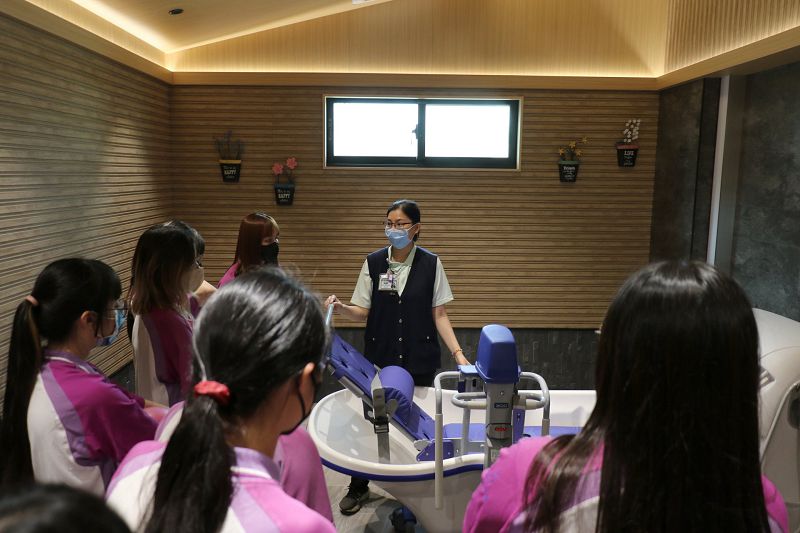 另一名廖姓同學則表示,過去對長照機構的印象多為空間狹隘、氣氛壓抑,但仁愛綜合長照機構的實際環境讓他大為改觀。特別是設有具備尊嚴照護的「禪風浴室」、「宗教室」等環境,讓他瞭解照護工作可以能如此人性化。「如果未來家人有需要,我也會優先考慮這裡。」廖同學說,這次參訪不僅翻轉他的刻板印象,也讓他對進入這個產業多一份憧憬。
