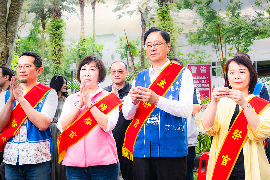 【記者徐玉英桃園報導】桃園市長張善政日前在立法委員呂玉玲、市議員徐玉樹、張肇良、劉熒隆、客家委員會副主任委員廖玉佩、市府農業局長陳冠義、龍潭區長鄧昱綵、新加坡台灣客家同鄉聯誼會會長林俐瑩等人陪同下,前往龍潭區出席「115年桃園桐花祭主題活動暨伯公祭儀」。