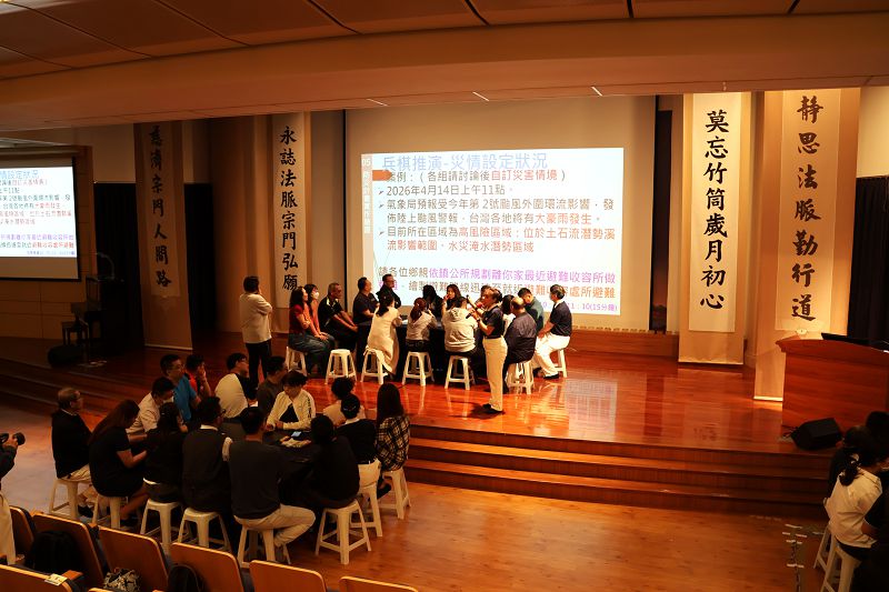 慈濟基金會表示,在兩天的課程中,理論、實作演練並進,第二天的防災計畫實作與驗證課程中,講師請學員們依據之前所學的內容進行防災計畫制訂;各組針對其分配到的災害類型進行防災計畫的制訂,有火災、地震、颱風、水災等災害,各組依災前、災中及災後的時程,分家庭、社區及政府等層級,各自需要執行哪些事項。