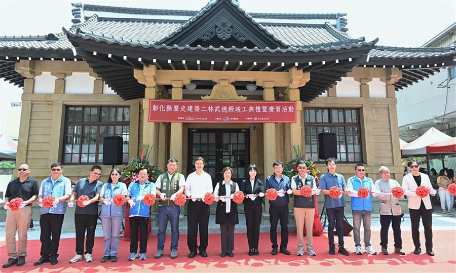 【記者鄭惠珠二林報導】彰化縣文化資產保存再傳佳音!位於二林鎮核心地帶、承載無數記憶的「二林武德殿」,19日隆重舉行修復竣工典禮,由縣長王惠美主持。王縣長表示,本案獲得文化部文化資產局補助1,800萬元,縣府編列配合款1,200萬元,總經費共3,000萬元。本案於112年6月開工,114年6月竣工。今日同步推出「時光入殿—二林的記憶老照片展」,帶領民眾走進時光隧道,重溫往昔的繁華與純樸,展覽至今年5月3日,邀請鄉親蒞臨二林看展覽、訪古蹟、品美食,體驗儒林之鄉的絕代風華。