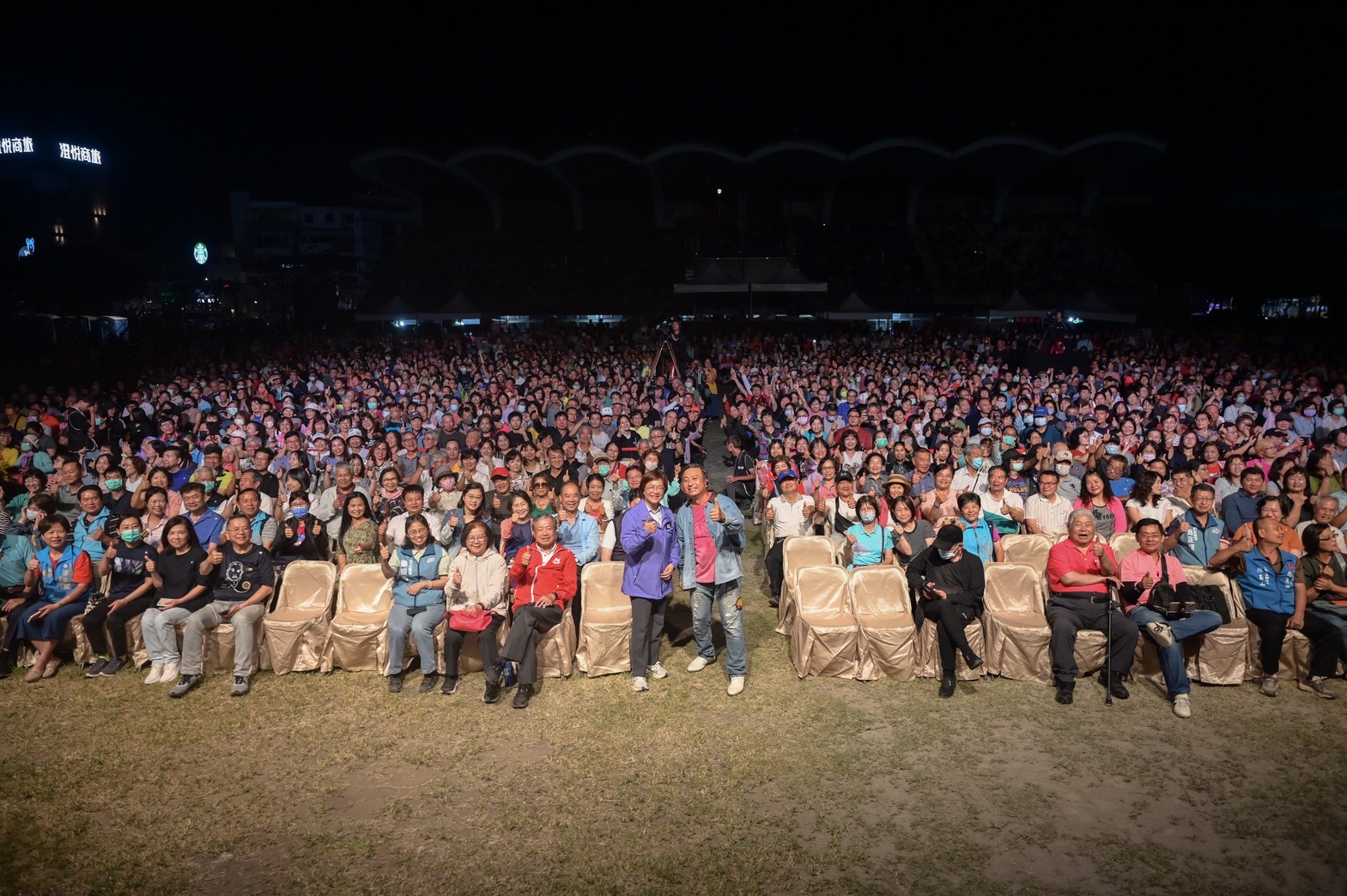 【記者鄭惠珠鹿港報導】「115年感恩晚會-鄉鎮藝術巡演活動」第3場,延續前一晚優人神鼓熱潮,彰化縣政府於4月19日在鹿港鎮立體育場舉辦「民歌演唱會」,邀請多位實力派歌手接力獻唱,縣長王惠美親臨現場與鄉親一起在經典的民歌旋律中,重溫那段純真溫馨的時代記憶。現場氣氛溫暖動人,連續2晚演出活動共吸引破萬人潮陶醉於音樂之中。