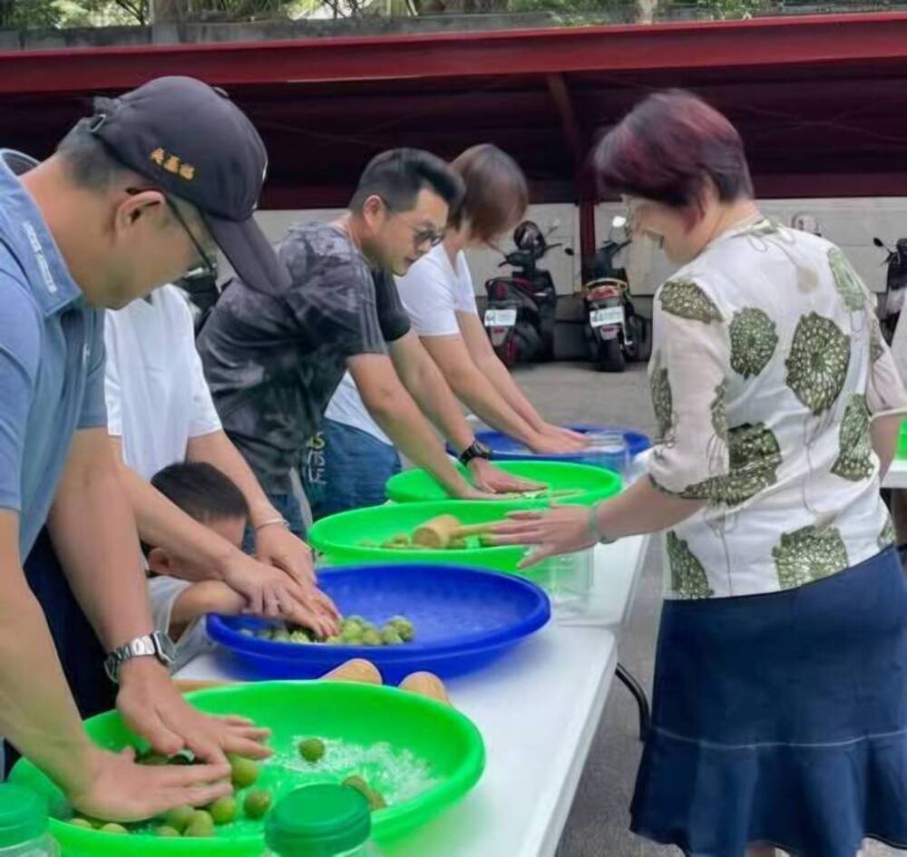 今年警察局梅樹花況不錯,入春後梅子結實累累大豐收,警察局最近也讓有興趣的同仁帶著家眷前來體驗採梅、製梅樂趣,大夥將剛從梅樹採收下來的新鮮青梅,排排站依照工序搓梅、敲梅、封罐,同仁笑說,這種整齊劃一的搓梅畫面實在太療癒了,手採的梅子就是新鮮,配上大家的熱情,今年的脆梅一定特別甘甜!