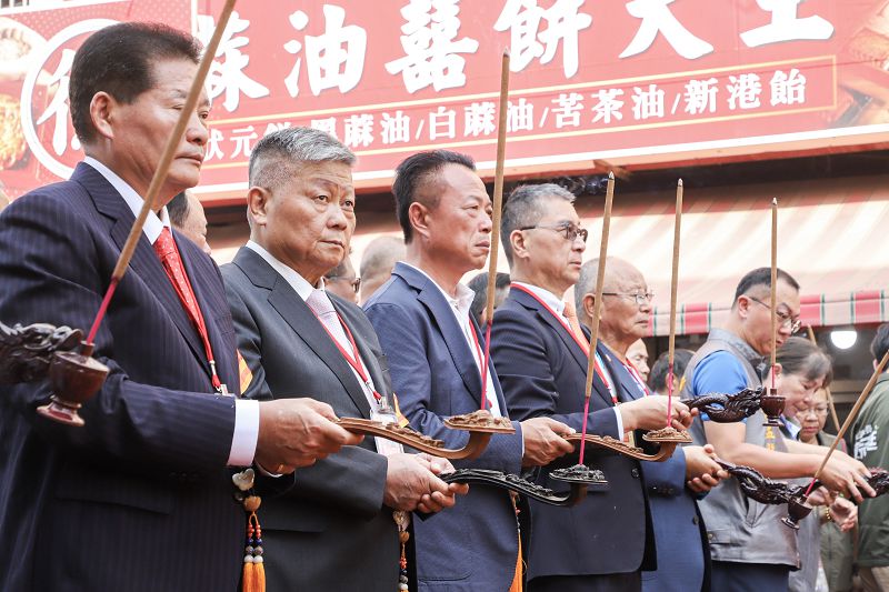 翁章梁表示,非常高興看見大家來到新港奉天宮,用虔誠的心來為媽祖祝壽,三月份有很多人有來嘉義參加台灣燈會,給燈會很大的支持,在這裡跟大家感謝,希望媽祖保庇嘉義繼續發展,台灣平安,大家萬事如意。