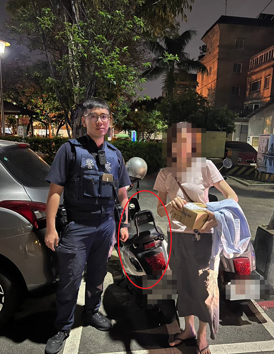 臺中市一名住臺中市潭子區的黎姓女子(69年次),於晚間21時許,透過社區大樓管理員報案,稱停放於潭子區中山路一段某社區地下室的機車不見了,警方獲報後,立即趕往現場查看,警方知悉緣由後,耐心地安撫黎女的情緒,並請她仔細回想騎乘機車回家後,是否還有在騎乘機車出門,經過警方與民眾一步一步拼湊出記憶,黎姓女子終想起有騎乘機車再次出門取貨,警方決定陪同民眾沿線前往,透過警方雪亮鷹眼,最終在距離住家400公尺處之北屯區松明街松勇公園旁尋獲該部機車,民眾見愛車失而復得,非常開心,對警方的積極協助表達高度感謝。